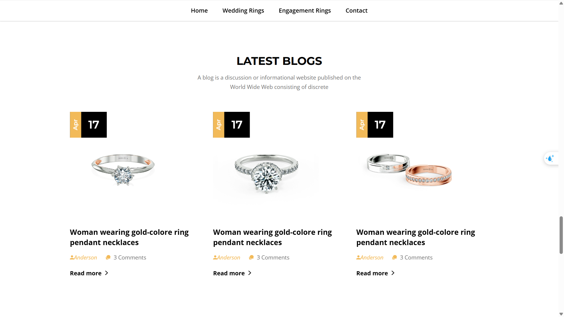 Trang web bán trang sức với các mặt hàng giá trị, sang trọng. Giao diện hiện đại, thân thiện với người dùng. Tích hợp hiệu ứng mượt mà và điều hướng dễ sử dụng.
